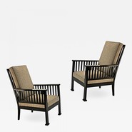 Austrian secession blackened wood pair of refined lounge chair