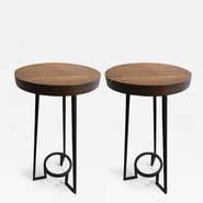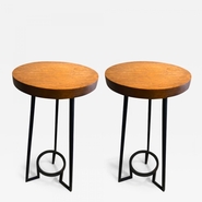 Bauhaus modernist french blond wood pair of side tables