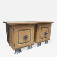 Art Deco exceptional brutalist pair of solid wood pedestals