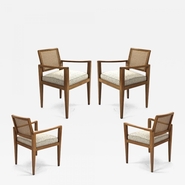 Emile Seigneur set of four oak cane arm chair