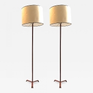 Jacques Adnet superb pair of brown hand stitched floor lamp