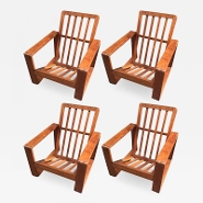 Pierre Dariel exceptional documented set of 4 "Hendaye" chairs