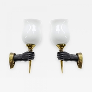 John Devoluy gold & blackened bronze pair of hand shaped sconces