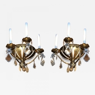 Maison Bagues early pair of gold leaf iron and pearl sconces
