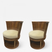 Pair of stunning French modernist barrel & swivel arm chairs