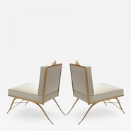 Rene Prou pair of gold leaf wrought iron slipper chairs