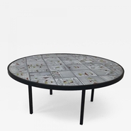 Roger Capron rare naive figuratif round coffee table