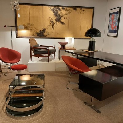 Nearly 40 exhibitors are exposing in their stands multiple pieces of art and of design : furnitures, glassware, lamps, paintings, sculptures, decorative objects and art pieces, from the XVIII, XIX and XX centuries.